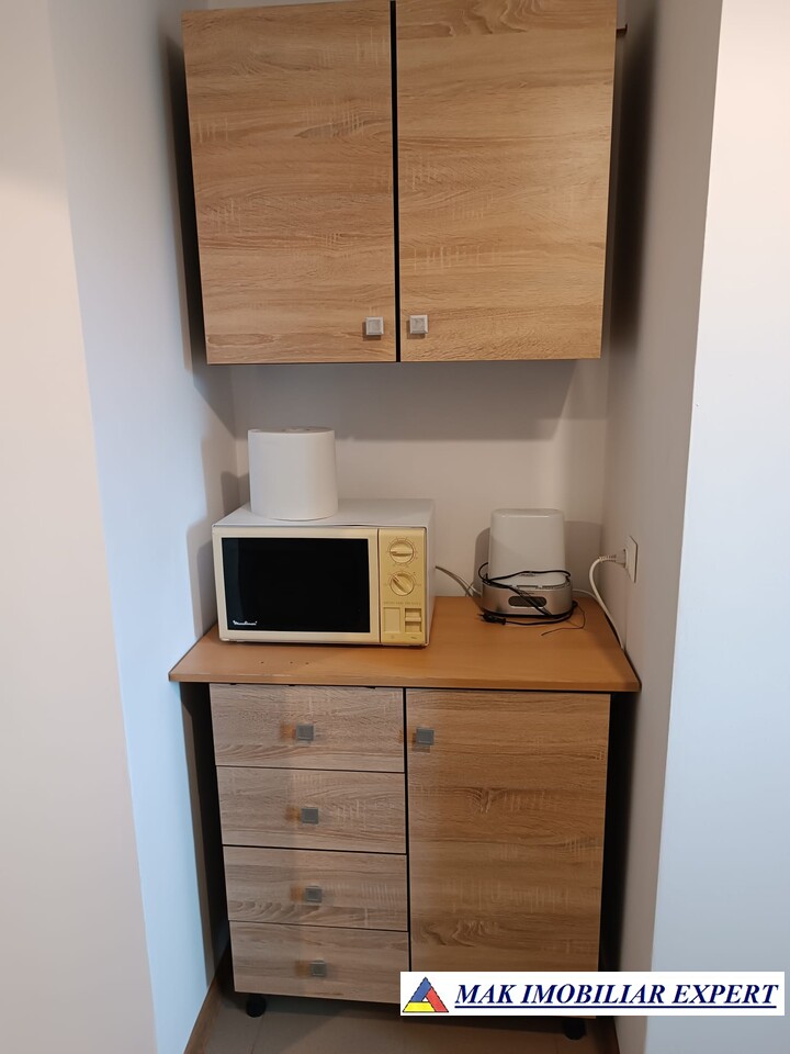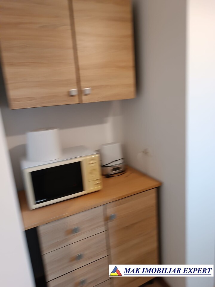 Dormitor mobilat complet, Living cu dressing mare și mobilier de depozitare (fără canapea).Bucătărie complet utilată – aragaz, cuptor, hotă, frigider, spații de depozitare. Baie aerisită. Balcon generos – perfect pentru relaxare