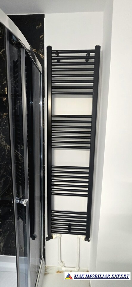 Apartamentul este complet mobilat și utilat, dispunând de centrală termică proprie, geamuri termopan, izolație termică, gresie, faianță, parchet și mașină de spălat. De asemenea, beneficiază de utilități complete: apă, gaz, canalizare, internet și cablu TV.