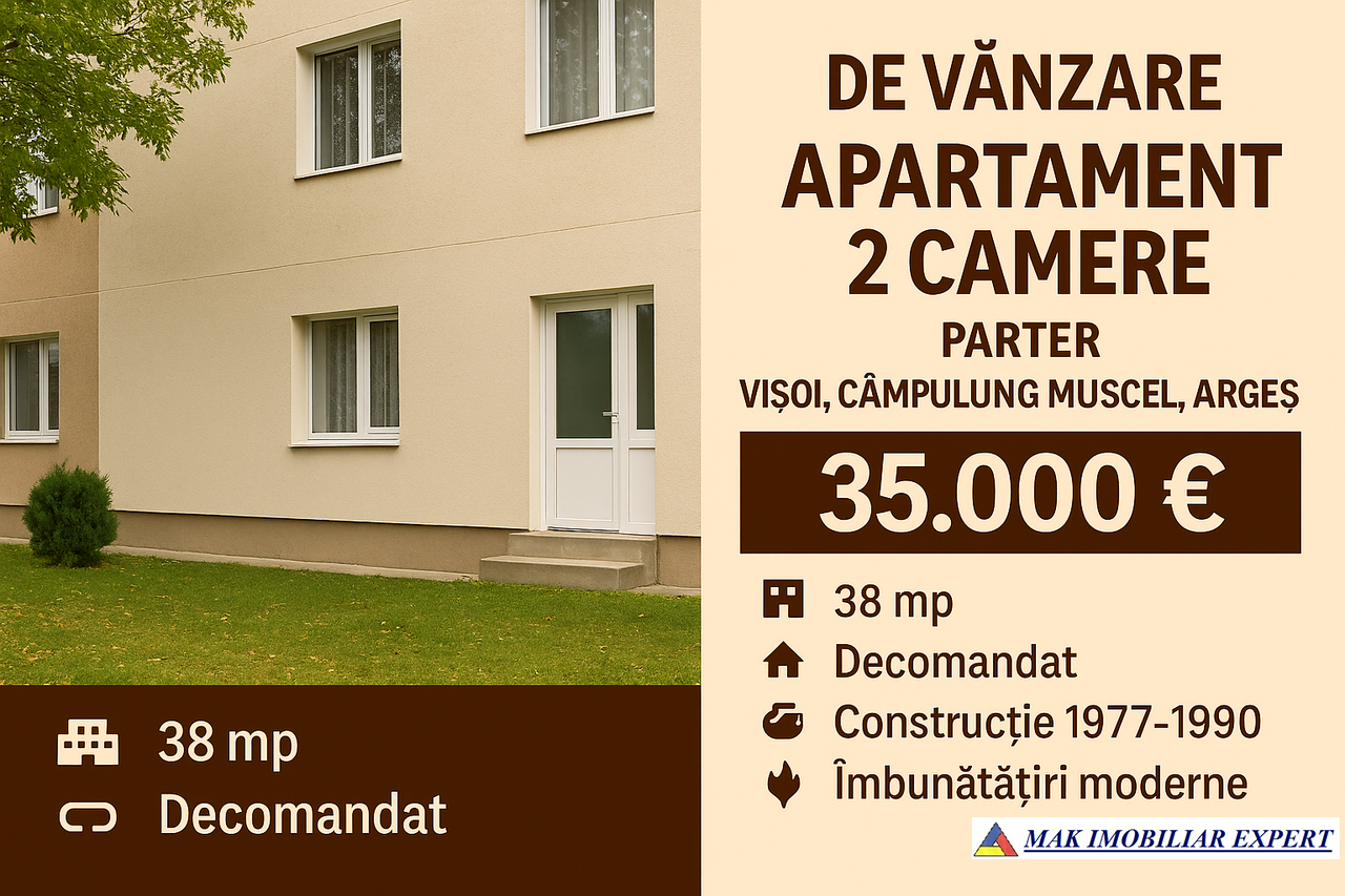 Vând apartament cu 2 camere, în suprafață utilă de 38 mp, situat la parterul unui bloc din cartierul Vișoi, în imediata apropiere a Bisericii de Lemn. Imobilul este construit în perioada 1977–1990 și are compartimentare decomandată, oferind o locuire eficientă și confortabilă.
