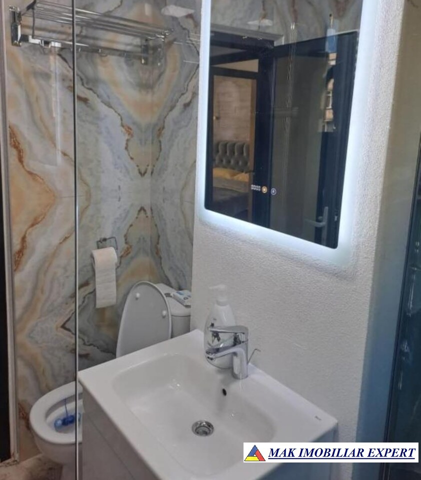 Apartamentul este complet mobilat și utilat, dispunând de centrală termică proprie, geamuri termopan, izolație termică, gresie, faianță, parchet, aragaz, frigider și mașină de spălat. De asemenea, beneficiază de utilități complete: apă, gaz, canalizare, internet și cablu TV. utilat mobilat in conditii DE LUX