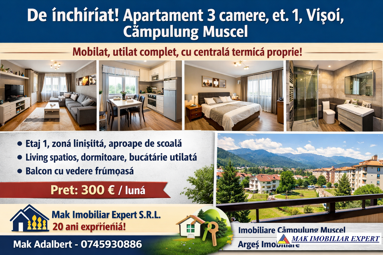 Apartament 3 camere Vișoi Câmpulung, mobilat – 300 €