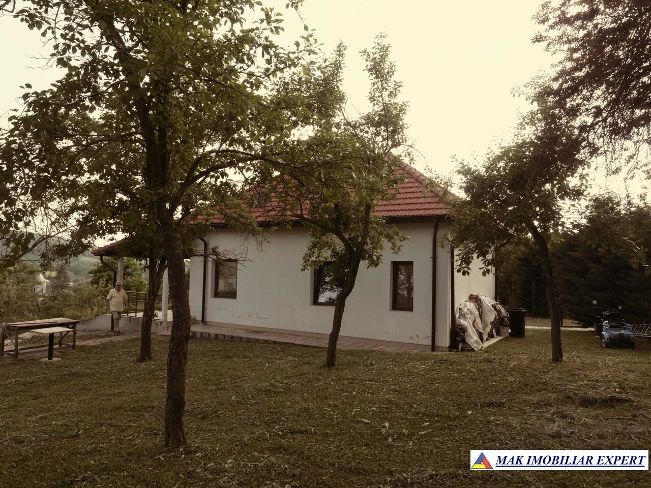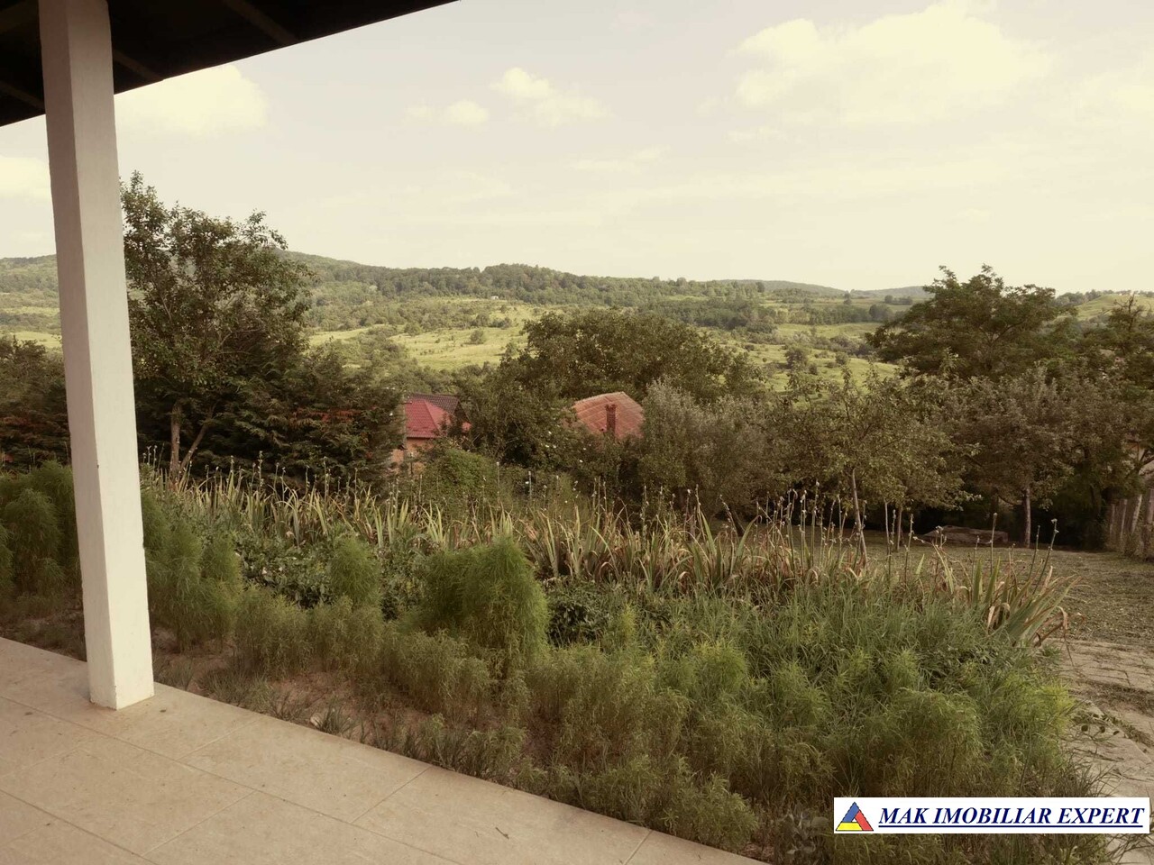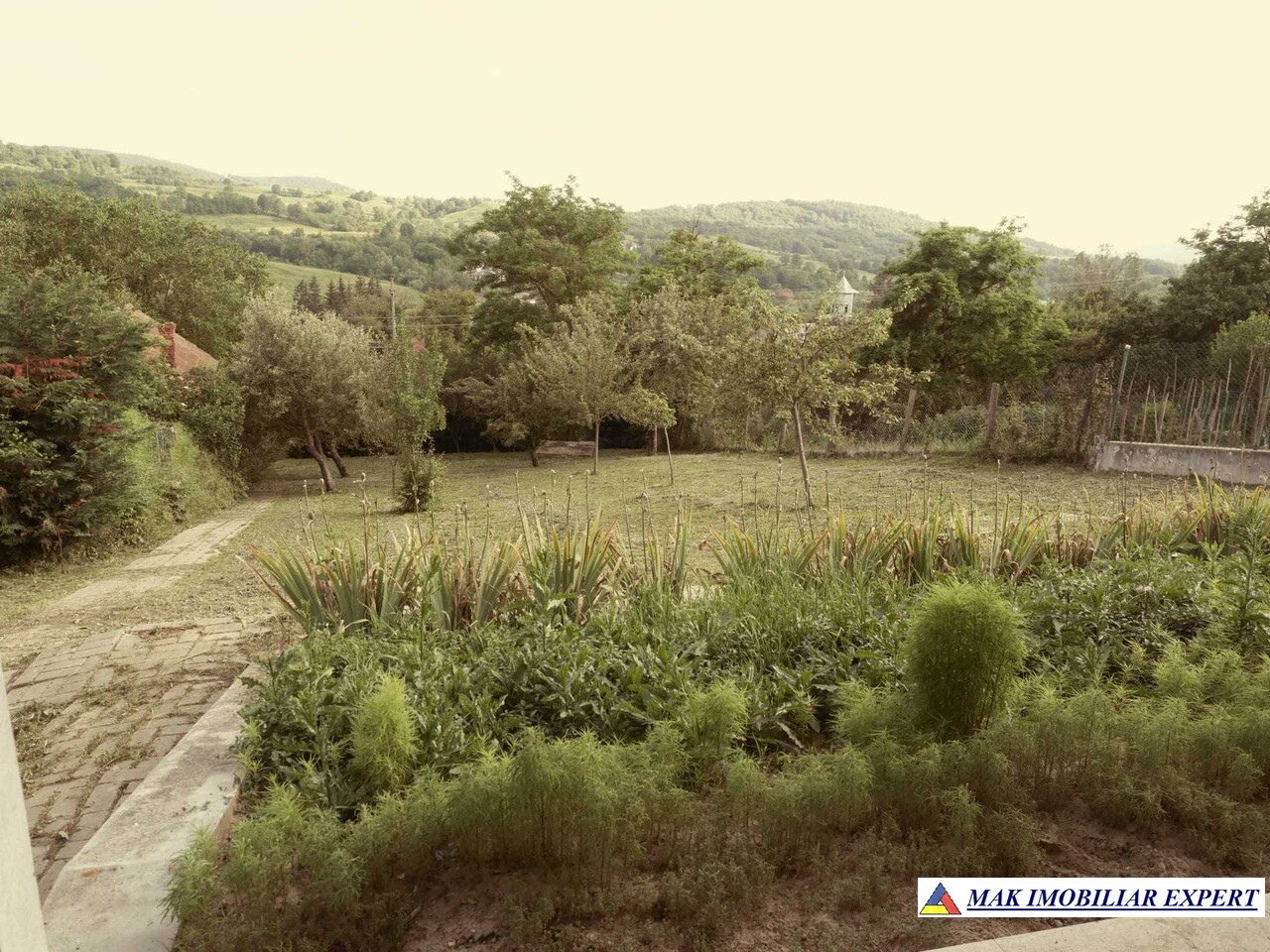 Teren intravilan in total 1366 mp, pomi fructiferi, gazon, alei, flori, arbusti etc. si loc special pentru gratar. Gardul perimetrului in mare parte protejat la interior de tui mari. Loc de parcare pentru trei masini. Perspectiva libera deosebit de frumoasa spre sud (vale si deal) si est (gradina cu pomi). Casa poate fi extinsa, studiul geotehnic al terenului este disponibil.