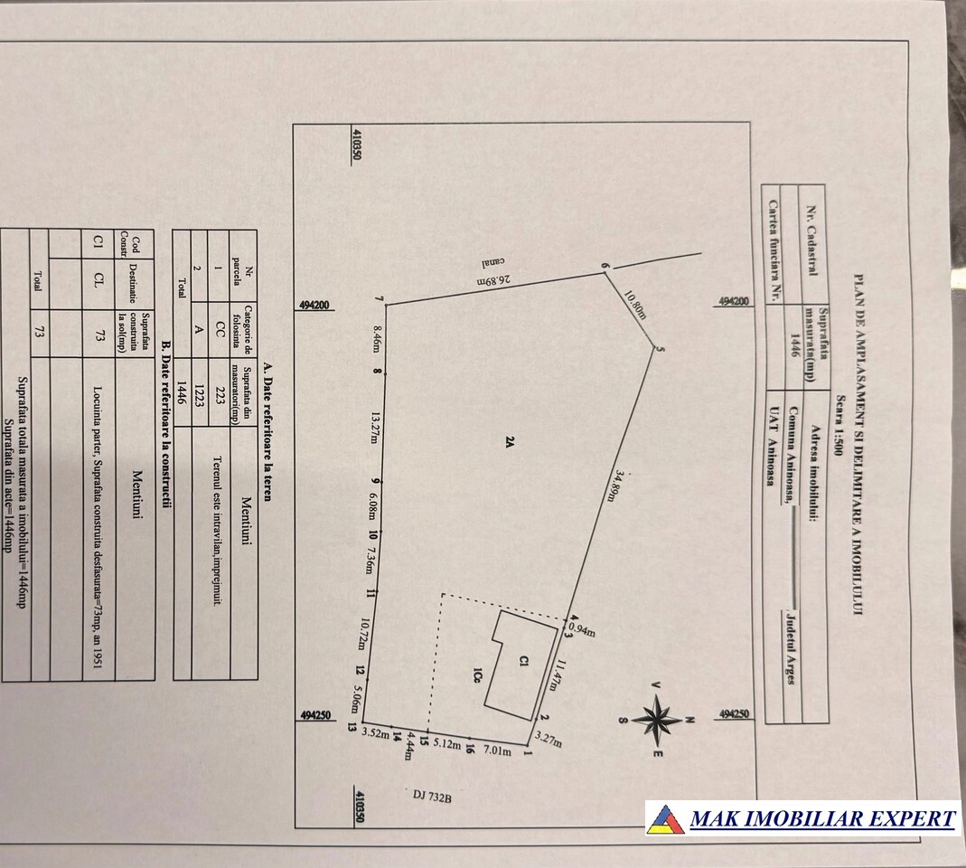 - Suprafață totală teren (casă + curte): 1.446 mp