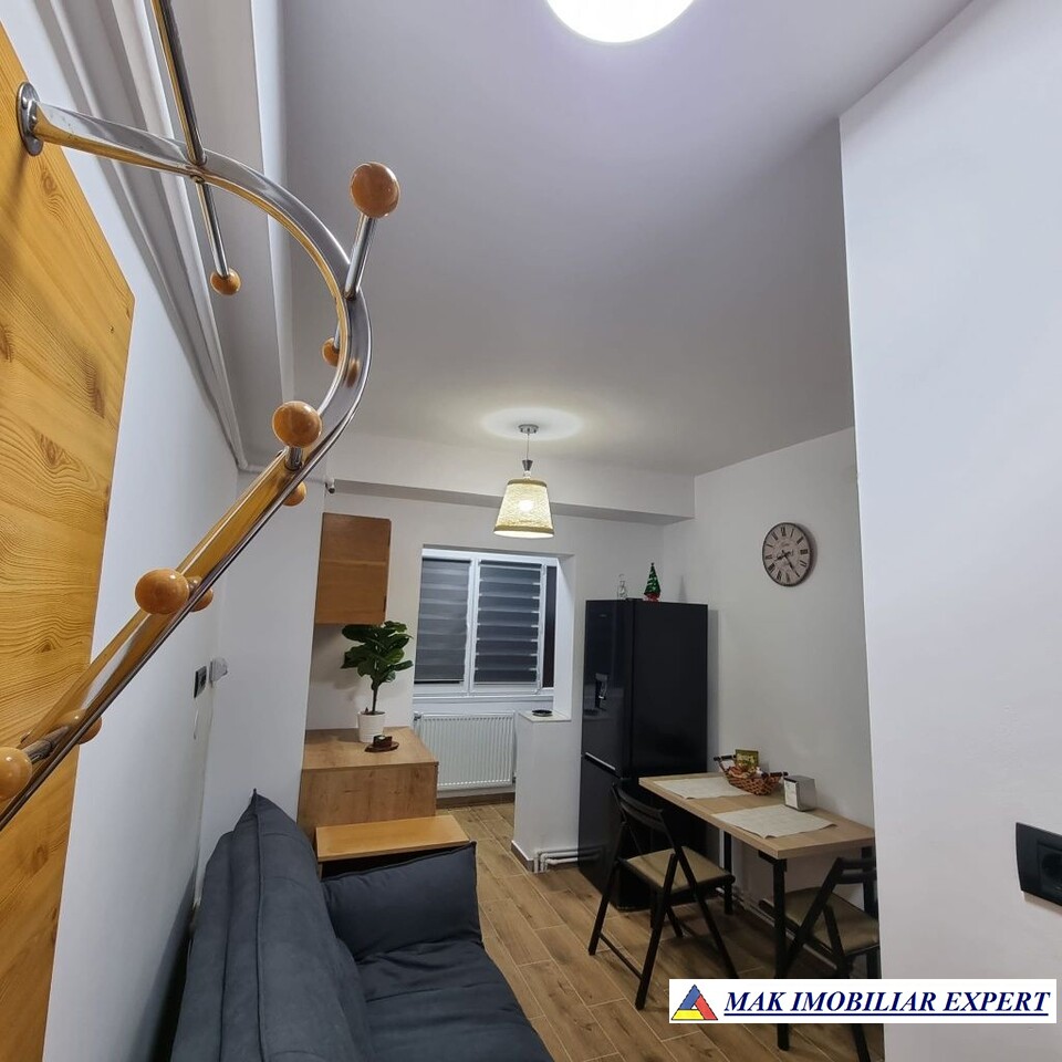 Ofer spre inchiriere un studio modern, situat pe zona centrală a orașului la doar 3 minute de Spitalul Municipal. Apartamentul este mobilat si utilat complet: *centrala proprie *masină de spălat rufe *tv *cuptor electric *plita *canapea extensibila *pat de mijloc *spatii de depozitare, etc. Costuri intretinere mici! Acest apartament reprezintă combinatie perfectă de eleganță,confort și locație premium.