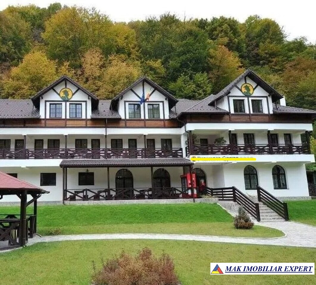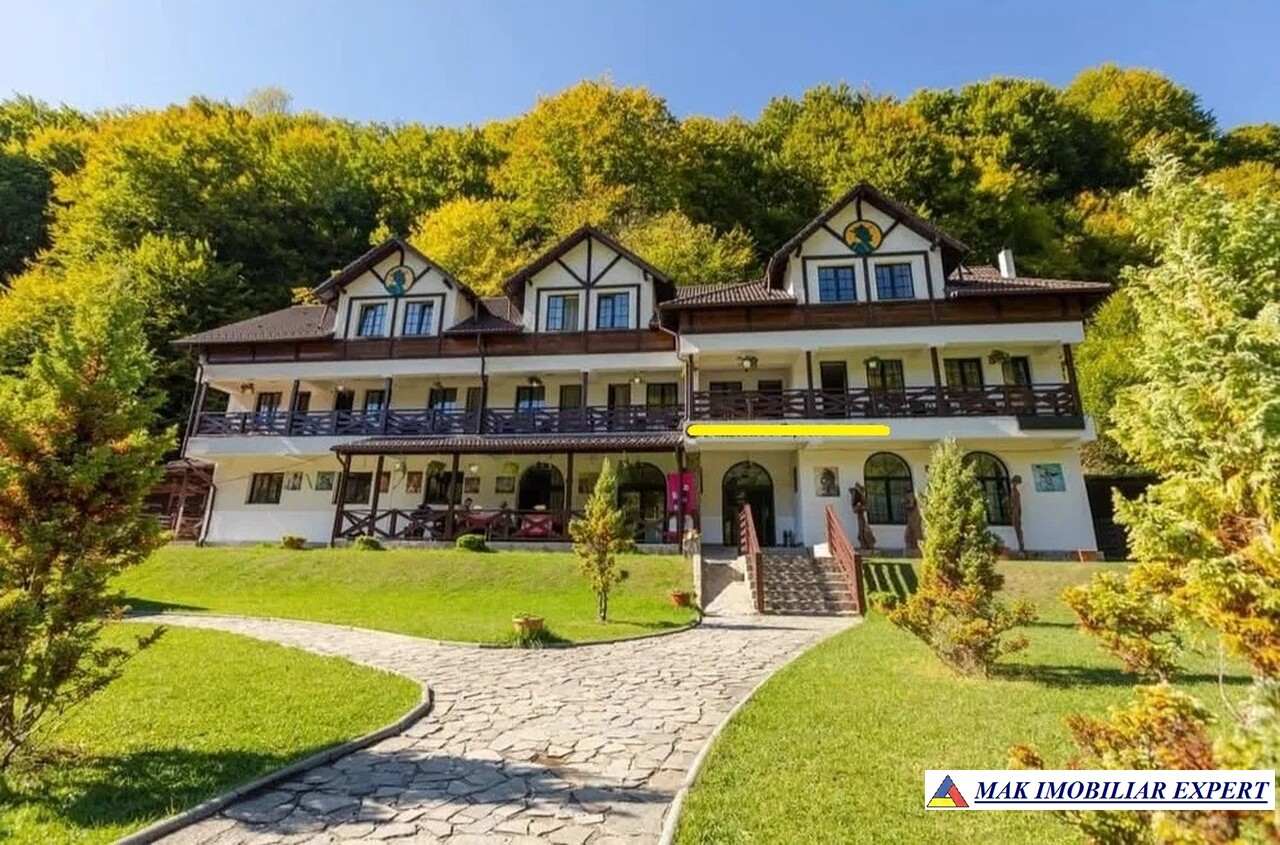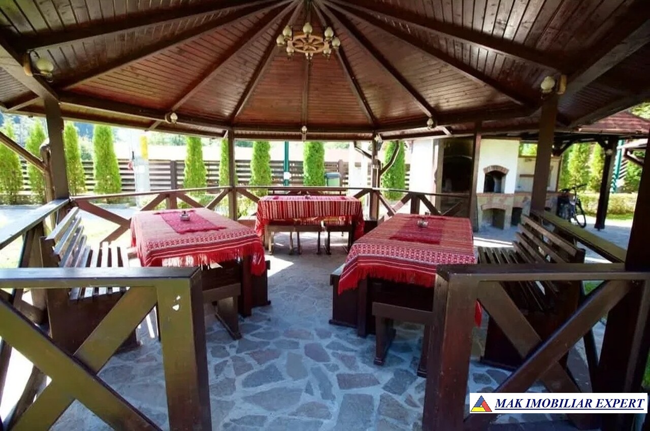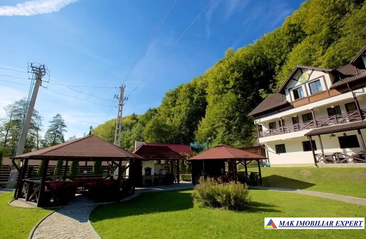 Pensiune activă cu 11 camere și 2 apartamente, 700 mp utili, teren 1.728 mp, clasificare 4 margarete, situată în Brădulet, Argeș.