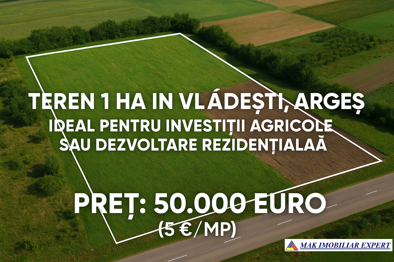 Teren 1 Ha în Vlădești, Argeș - Ideal pentru Investiții Agricole sau Dezvoltare Rezidențială
