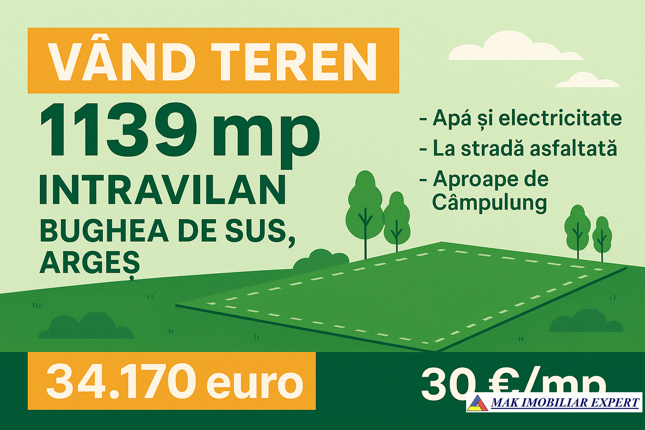 Teren intravilan 1139 mp, situat în Bughea de Sus, lângă Câmpulung Muscel. Ideal pentru casă de vacanță sau investiție!