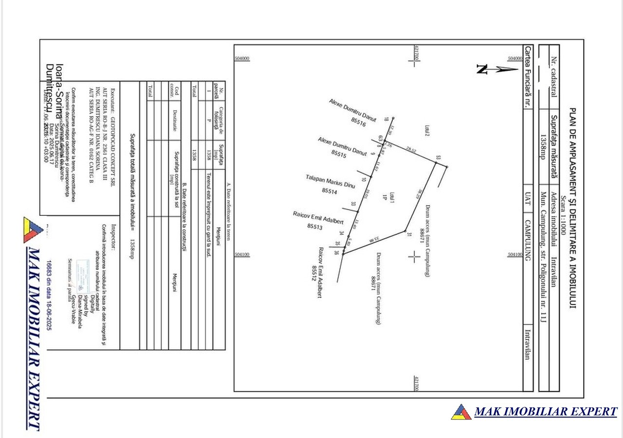De vânzare teren intravilan în municipiul Câmpulung Muscel, cu suprafața totală de 1.358 mp, situat într-o zonă liniștită de case, în apropierea pădurii și la doar aproximativ 1.3 km de centrul orașului. Proprietatea are deschidere la drumul public pe două laturi, ceea ce oferă flexibilitate în compartimentare, acces și posibilități de construcție.