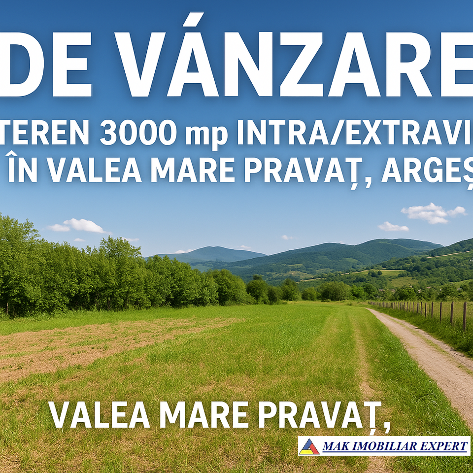 Teren 3000 mp intra/extravilan de vânzare în Valea Mare Pravăț, Argeș – Oportunitate pentru dezvoltare rezidențială și agricolă