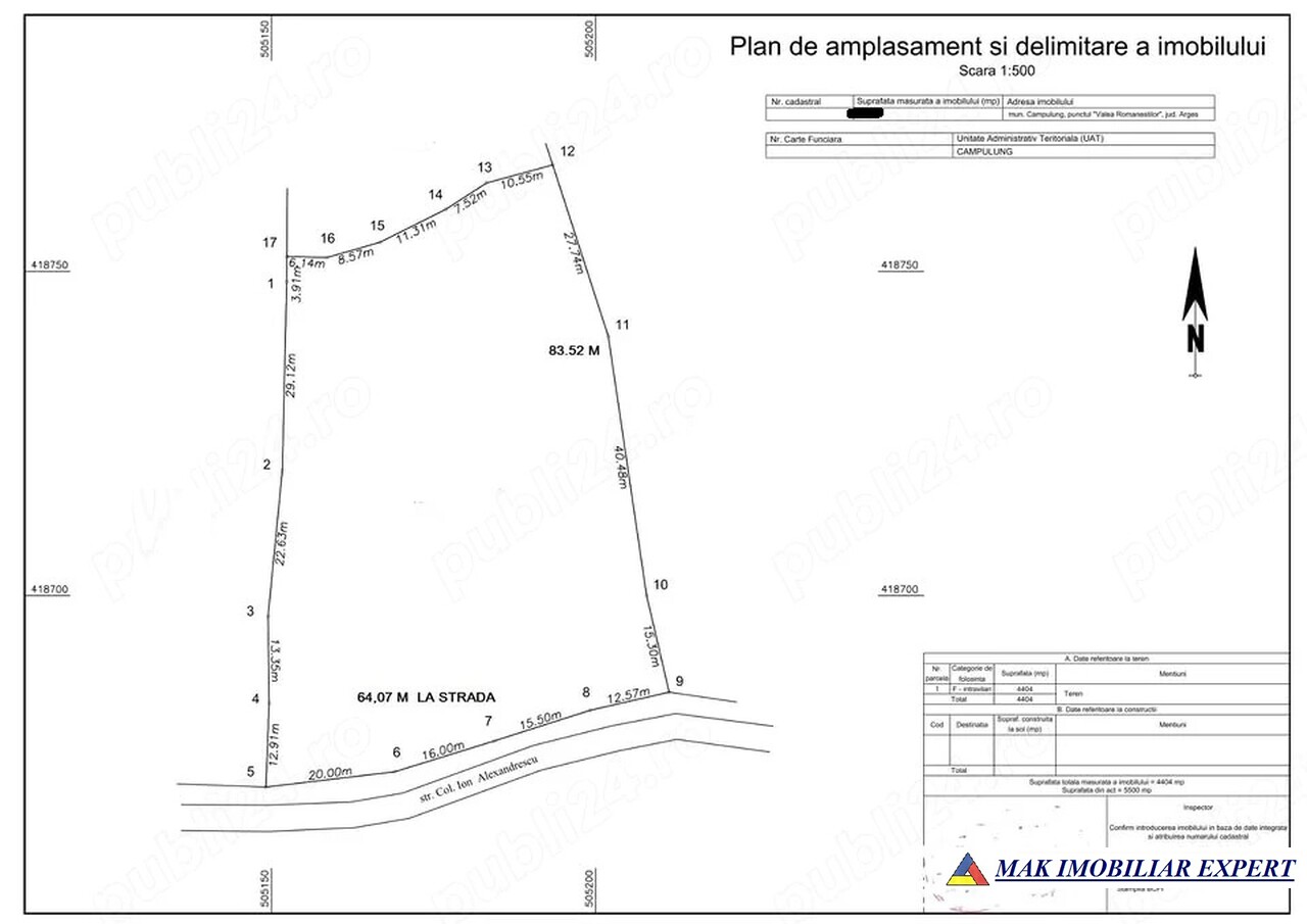 Teren 4.400 mp Valea Româneștilor Câmpulung Argeș