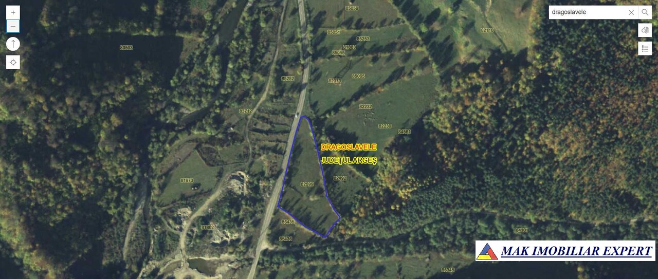 Teren 5.747 mp în Dragoslavele Argeș, 543 mp intravilan + 5.204 mp extravilan, aproape de pădure și DJ 725. Preț 40.229 €.