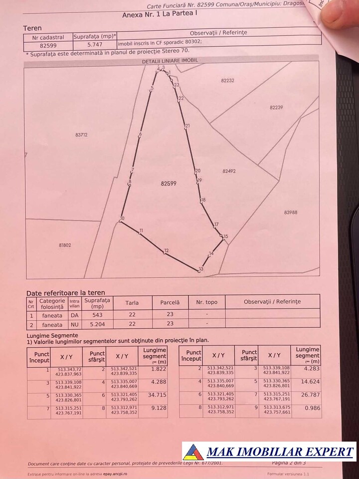 - Suprafață totală: 5747 mp [intravilan (543 mp) + extravilan (5204 mp)]