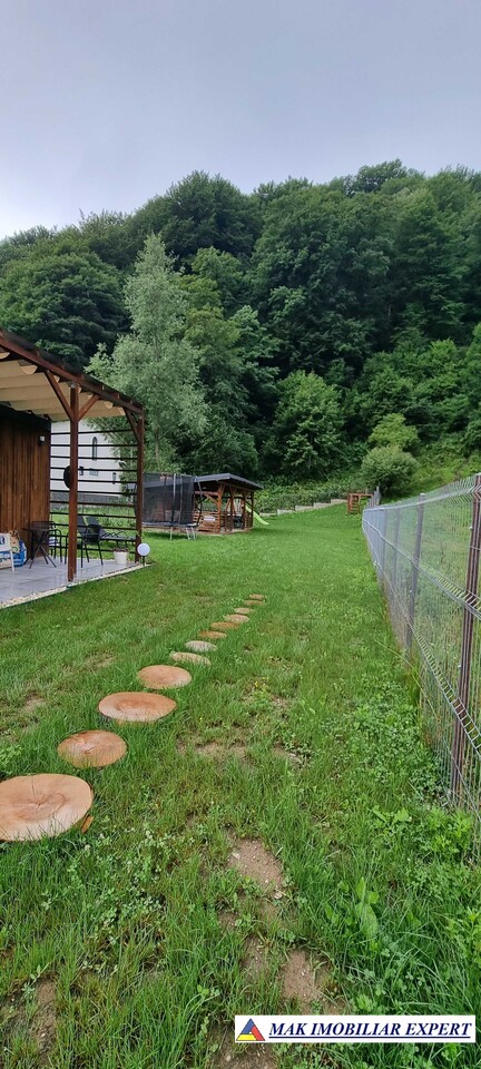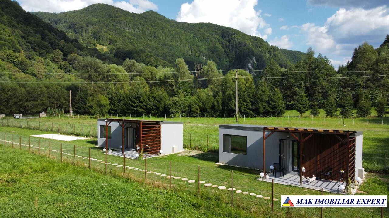De vânzare 2 bungalouri moderne și teren 1.200 mp în Sătic, Rucăr. Cadru natural superb, foișor, curent, apă, investiție turistică. Preț 160.000 € + TVA.