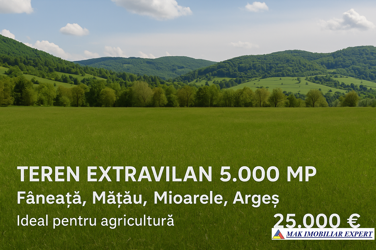 Meta Descriere: Teren extravilan de 5.000 mp în Mățău, Mioarele, Argeș, potrivit pentru fâneață sau livadă, cu acces facil și amplasat într-o zonă naturală.