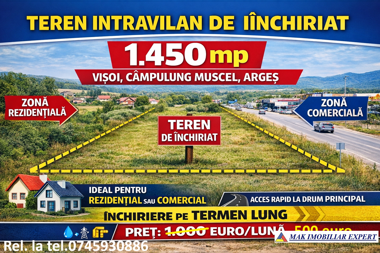 Teren Intravilan de Închiriat 1450 mp în Vișoi, Câmpulung Muscel, Argeș - Ideal pentru Dezvoltare Rezidențială sau Comercială