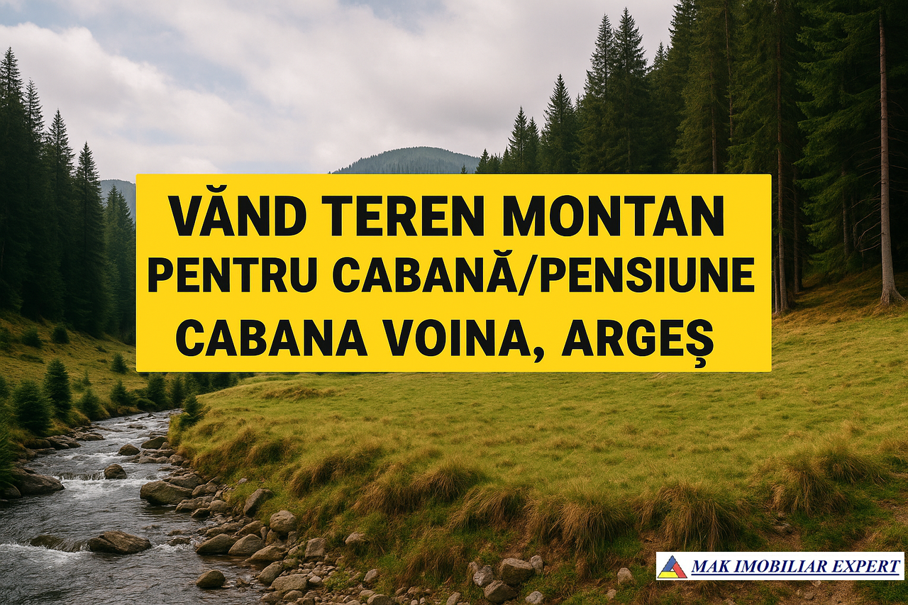 Vând teren montan situat în apropierea Cabanei Voina, județul Argeș, ideal pentru construcția unei cabane sau a unei pensiuni turistice. Proprietatea beneficiază de o amplasare de excepție, în mijlocul naturii, fiind perfectă pentru relaxare, vacanțe sau activități turistice.