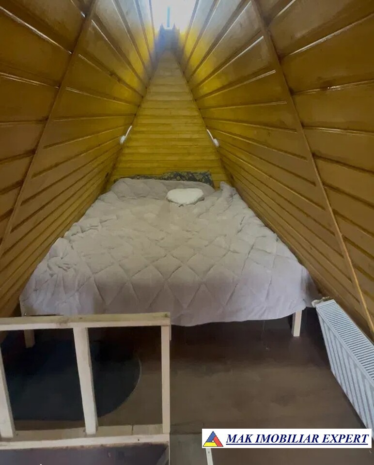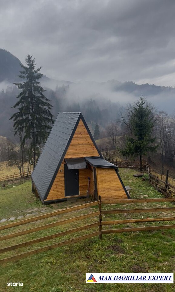Vand cabana tip A frame - Locatie de vis, la 500 m de intrarea in Parcul National Piatra Craiului ! Structura lemn tratat, izolata in exterior cu polistiren / in interior cu vata minerala. Finisare la interior cu lambriu de calitate superioară! Constructie nouă - finisată 2025 ! Amprenta la sol 30 mp. Fundatie pe piloni si beton armat. Terasa 7,5 mp, cabana este conectată la rețeaua de apa. Sistem electric complet cu tablou electric. Teren 400 m2p intravilan cu toate utilitatile: apa, canalizare, electricitate, gaz.