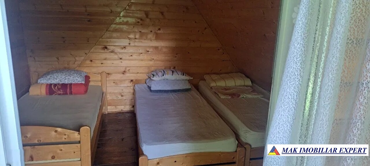 Vand cabana destinata relaxarii sau inchirierii. Afacere La cheie. Suprafata 100 mp pe doua nivele. Cabana dispune de 3 dormitoare. un living. 1 baie. terasa proprie. lac de pescuit propriu. Teren siprafata de 1.000 mp, Cabana este dotata cu incalzire proprie pe gaze. independenta energetic avand panouri fotovoltaice si baterii de acumulare. Cabana dispune de apa potabila avand put propriu. Se afla intr o zona foarte linistita. Se ajinge cu orice masina pana la usa.