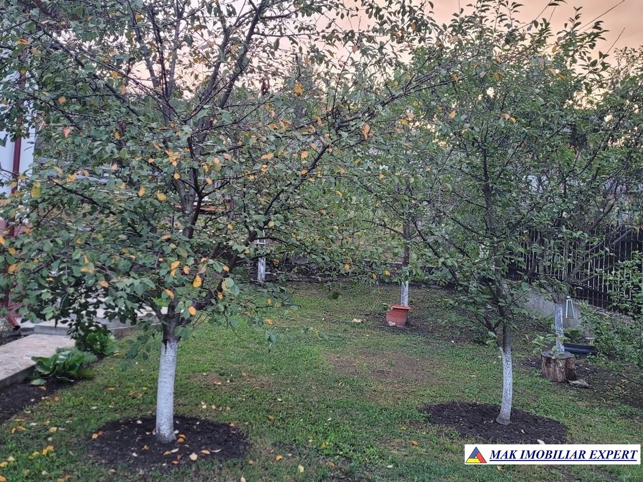 Terenul aferent este de 1.250 mp, curte generoasă cu livadă pe rod, care include: meri, peri, cireși, vișini, gutui, piersici, moșmon, pruni, coacăzi, mure fără spini, agrișe și smochini. În curte se mai află: