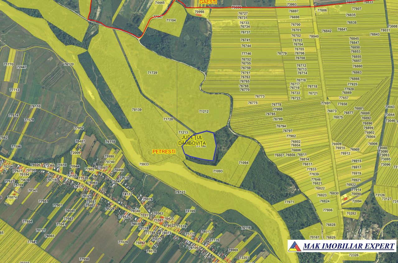 Vand teren forestier 28 ha (24+4 ha), situat pe malul Argeșului la 2 km de orașul Gaesti, Dambovita