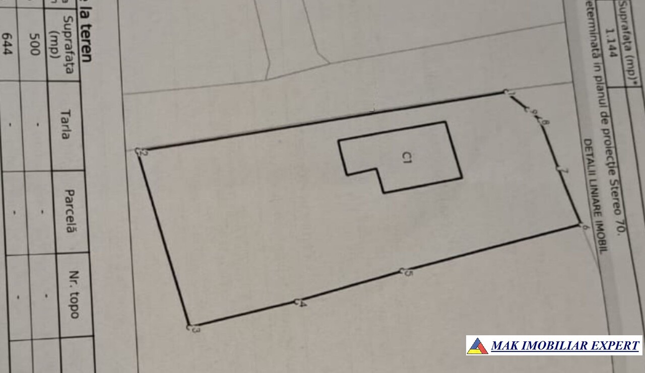 Terenul are o suprafață de 1.144 mp și este amplasat la intersecția a două străzi, beneficiind de o deschidere generoasă: aproximativ 25 m la o stradă și 50 m la cealaltă, un avantaj important pentru construcție, compartimentare sau eventuală investiție.