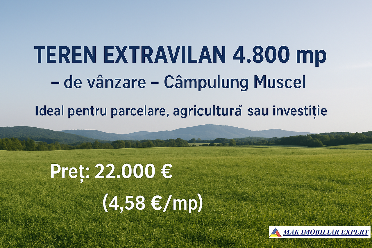 Teren extravilan 4800 mp, parcelabil, situat în Câmpulung Muscel, Argeș. Ideal pentru investiție, agricultură sau construcții!