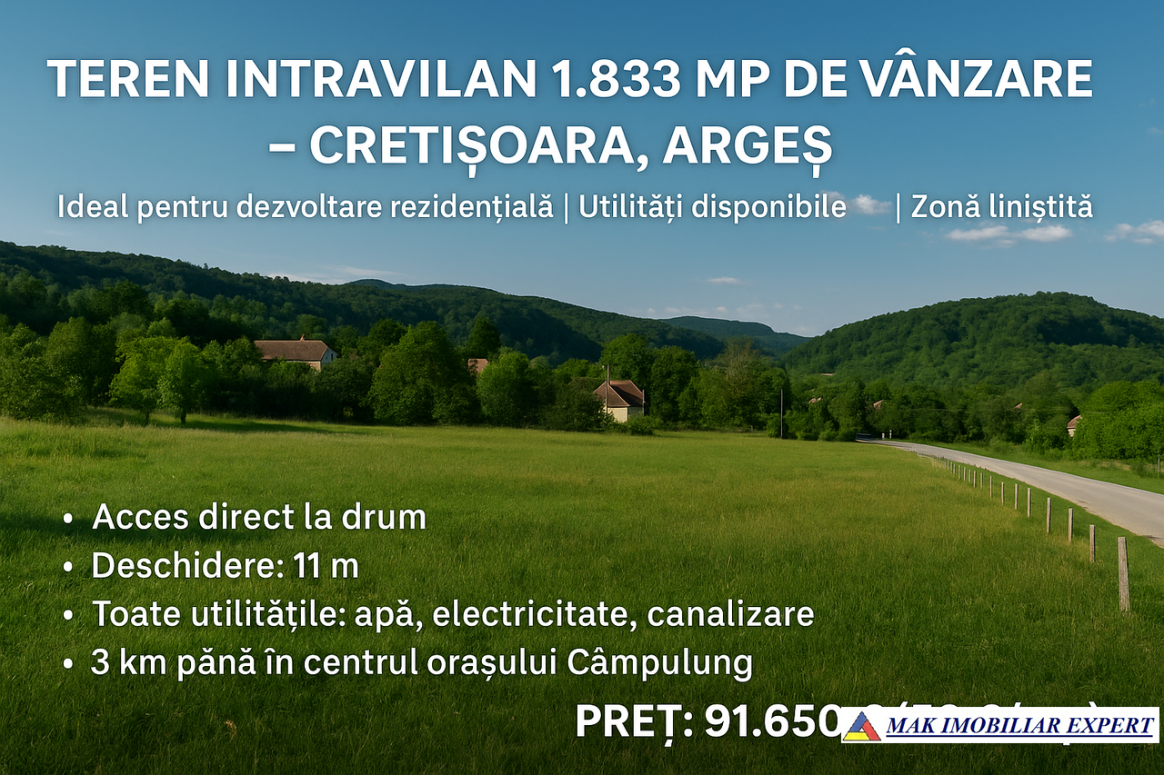 Vand Teren Intravilan 1833 mp, Cretisoara, Argeș, ideal pentru dezvoltare rezidențială