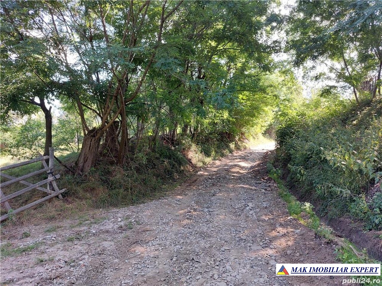 Terenul are categoria de folosință livadă de prun și dispune de două platouri relativ drepte, potrivite pentru construcții. Panta redusă permite realizarea fundațiilor cu costuri mici și asigură scurgerea naturală a apelor pluviale. Prin proprietate trece un pârâu, care prin amenajare poate fi transformat într-un lac peisagistic, oferind un plus major de valoare și atractivitate.