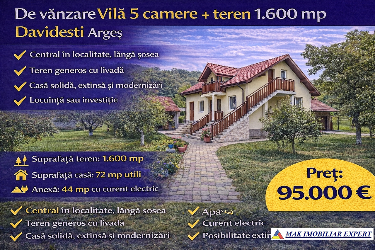 Vânzare Vilă 5 camere + teren 1.600 mp Davidesti Argeș