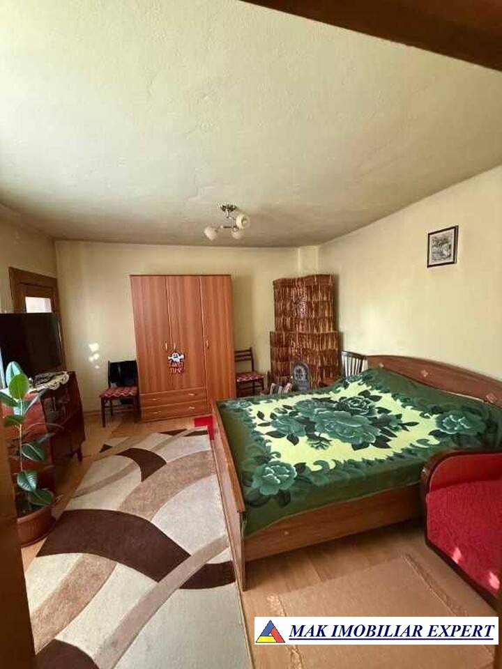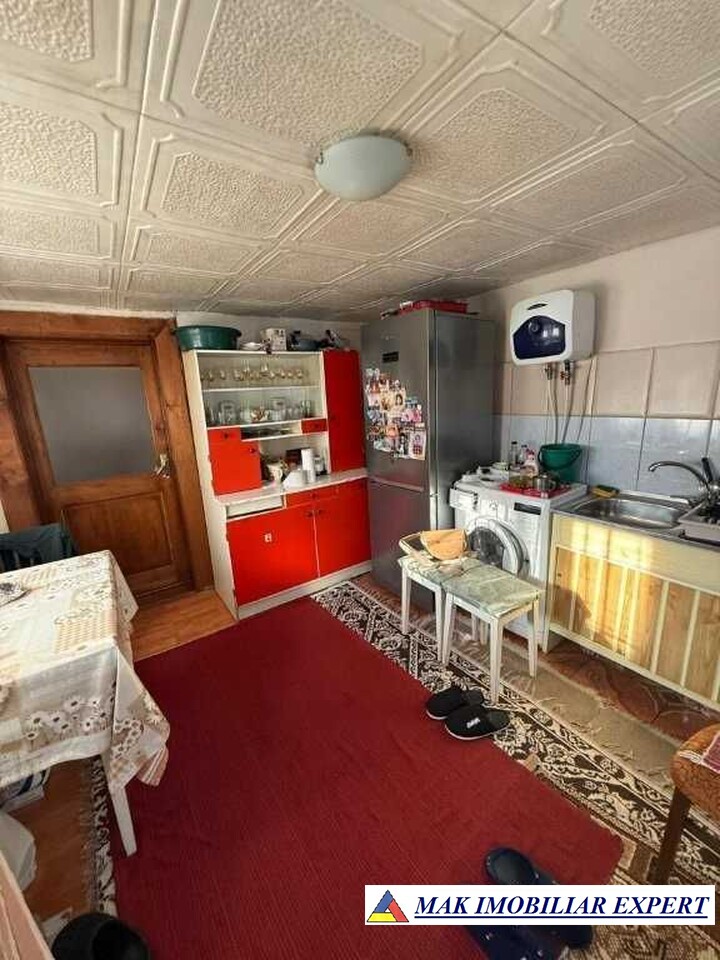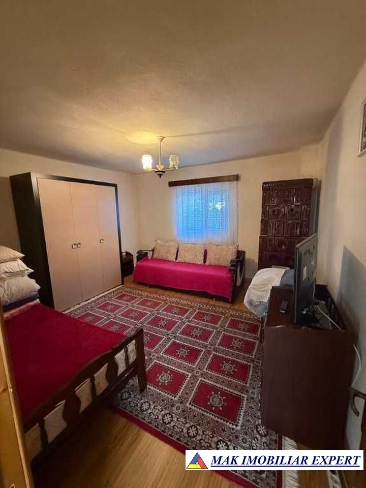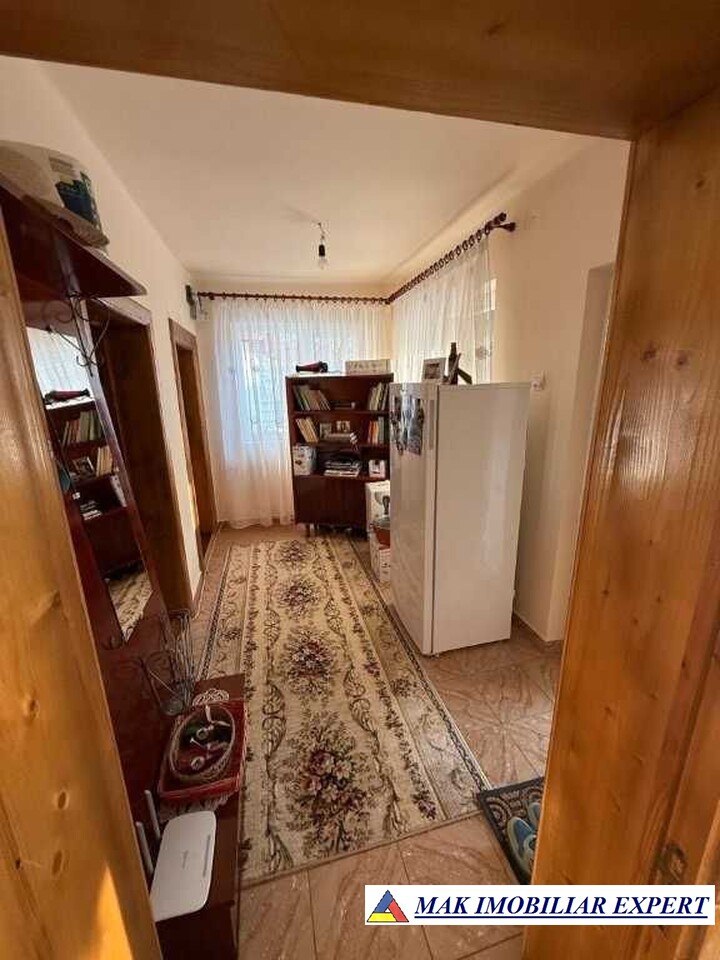Casa de vanzare, an constructie 1984, cu fundatie din beton armat. Detalii constructie: boltari, placa de beton peste parter, pod inalt, acoperis tigla ceramica, izolata cu polistiren de 15cm, geamuri PVC, usi exterior PVC, usi interior lemn, 2 sobe de teracota, 1 soba bucatarie + plita. Suprafata utila 100 mp. Utilitati: curent, apa curenta, fosa septica, internet. Casa are 3 camere, o bucatarie, o baie, un antreu, un hol, o terasa, un beci. Acces casa: 3 zone. In curte se afla si o magazie de 10 mp. Suprafata curte 1.000 mp - teren fertil, bun pentru cultivarea legumelor. Teren amenajat cu plante ornamentale, flori, pomi fructiferi pe rod.