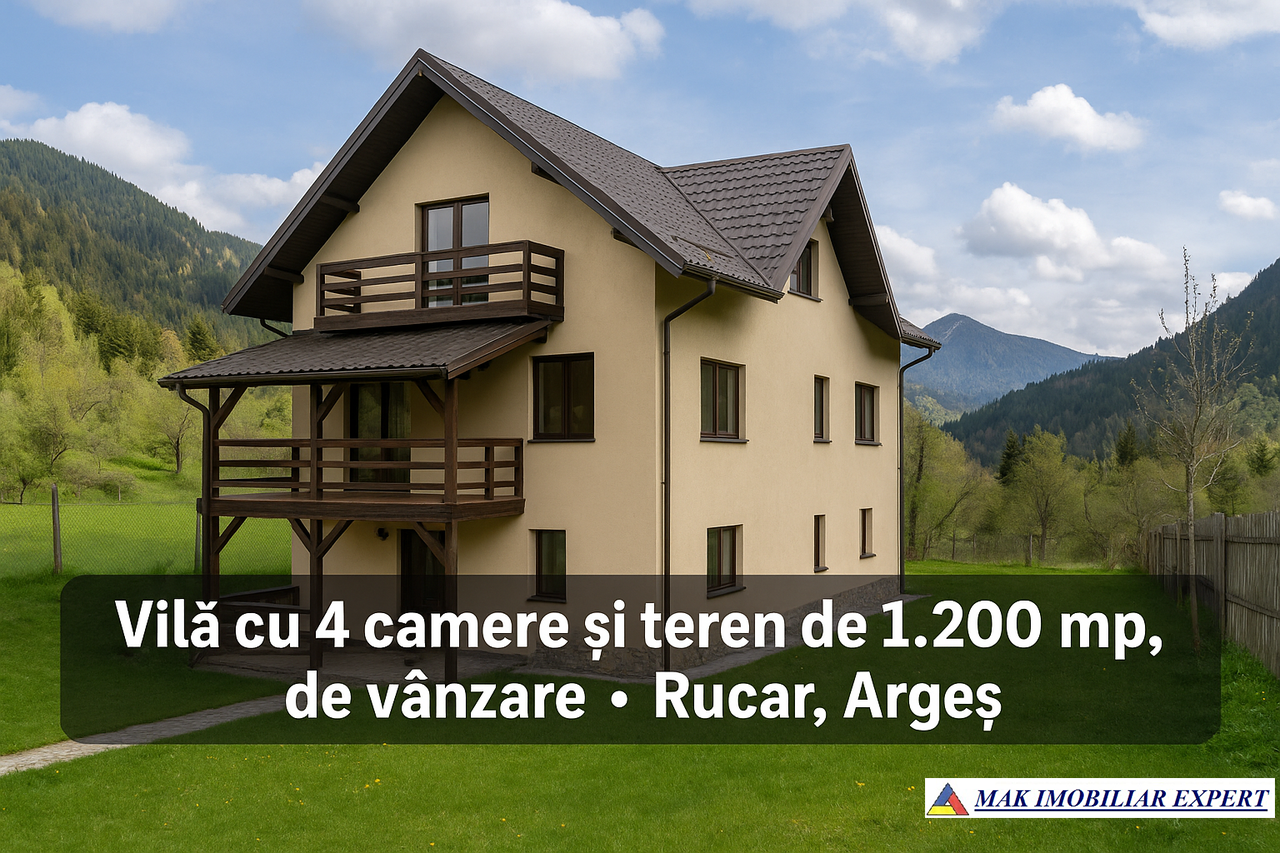 Meta Descriere: Vilă cu 4 camere și teren de 1.200 mp în Rucăr, Argeș, ideală pentru reședință de vacanță sau locuință permanentă, amplasată într-o zonă montană liniștită și pitorească.