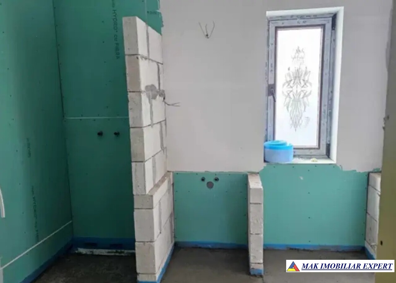 Interiorul este finisat modern, cu materiale de calitate superioară. Construcția beneficiază de placă de beton la parter și este echipată cu încălzire în pardoseală, oferind eficiență energetică și confort termic optim.