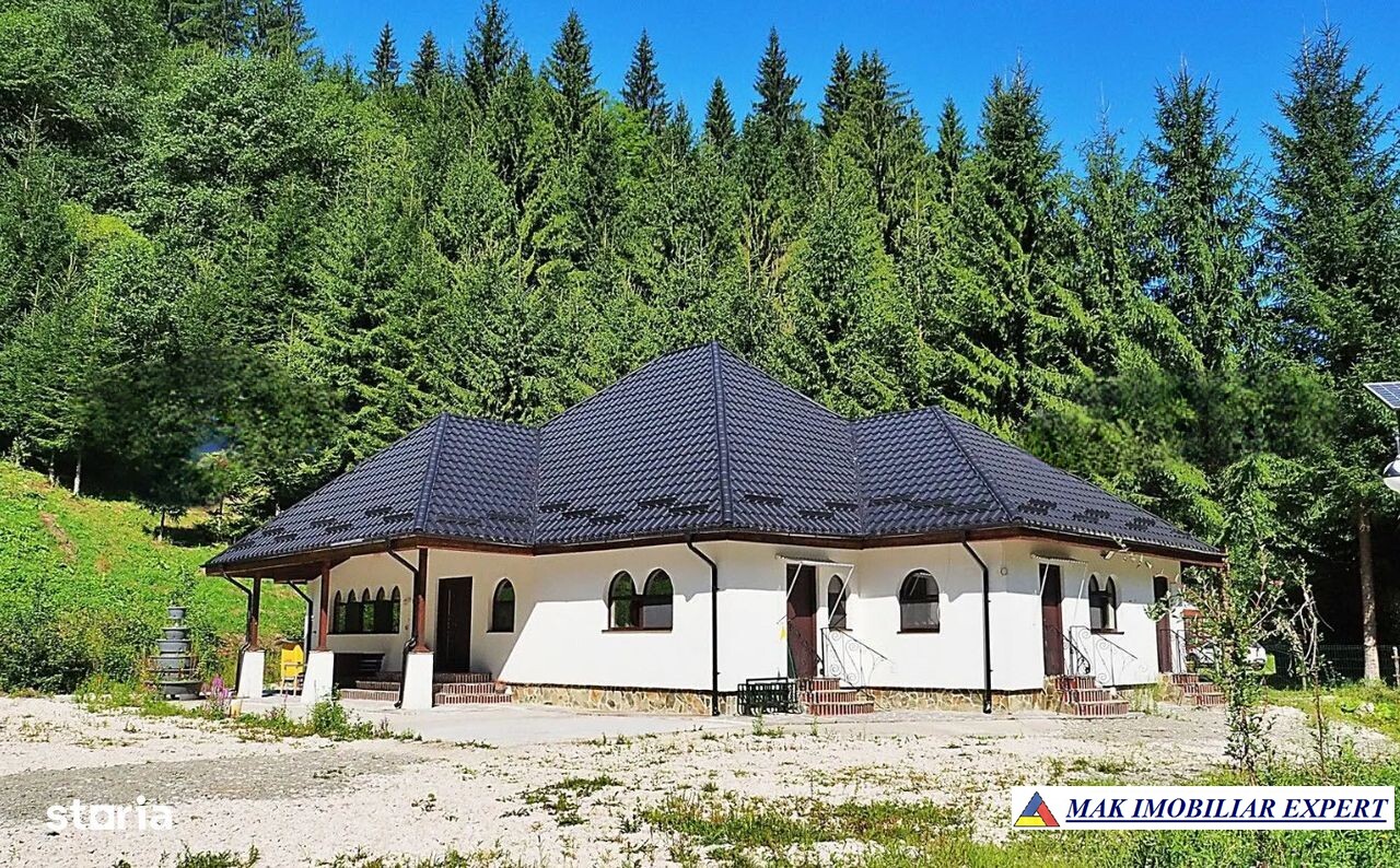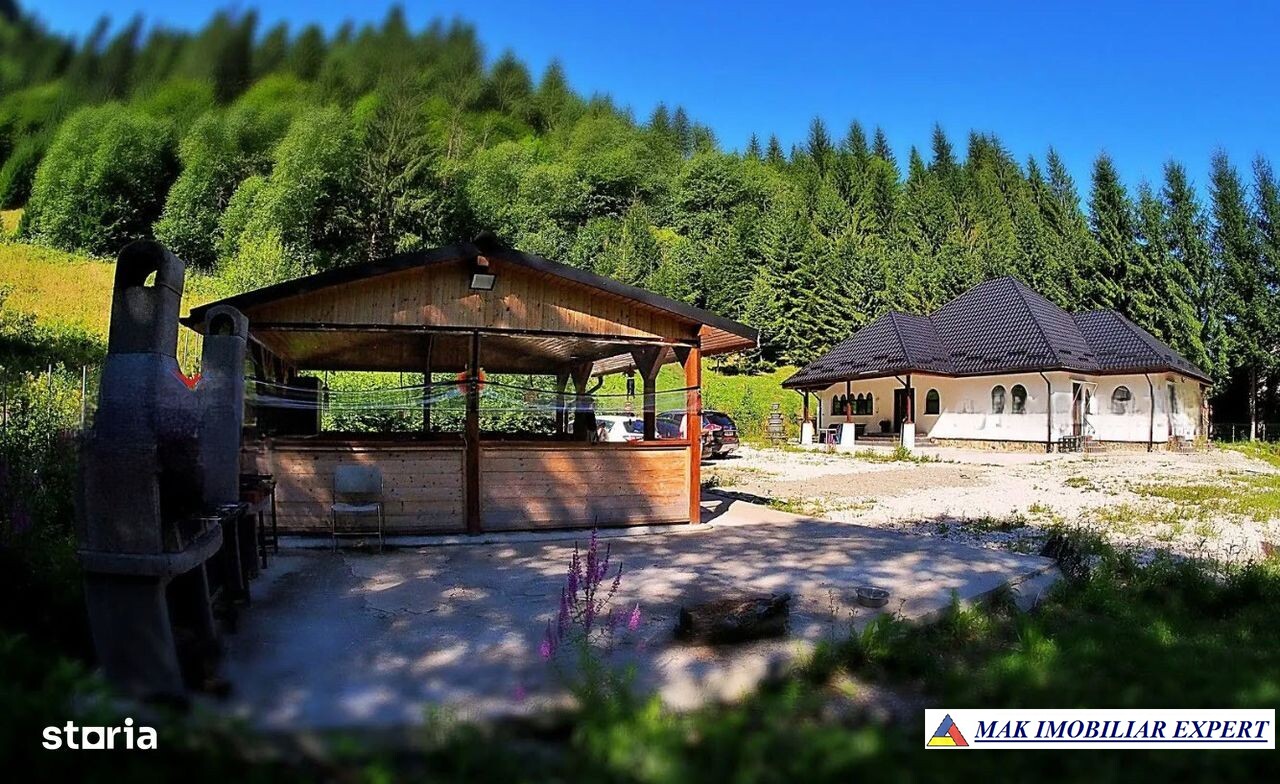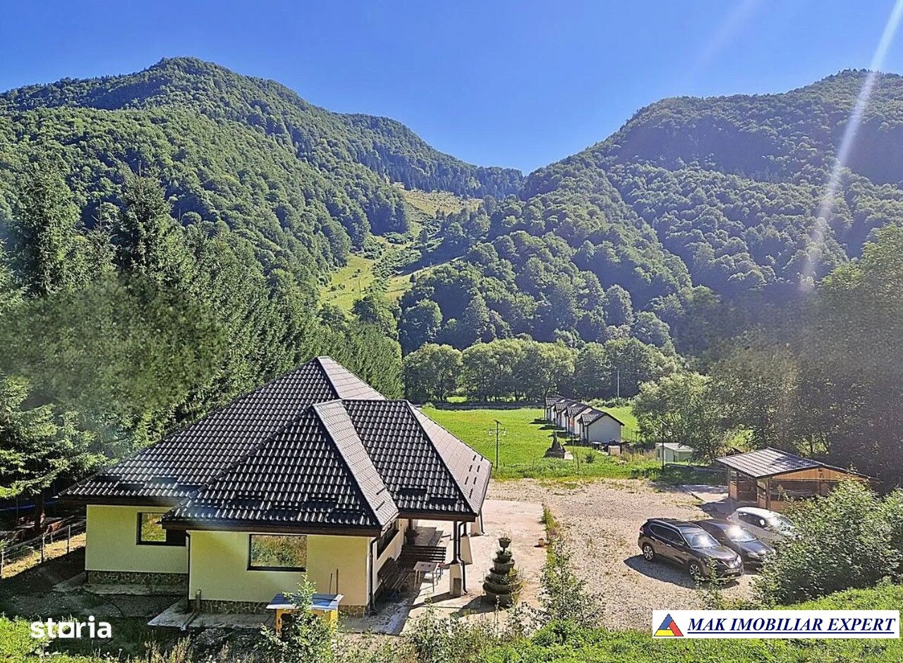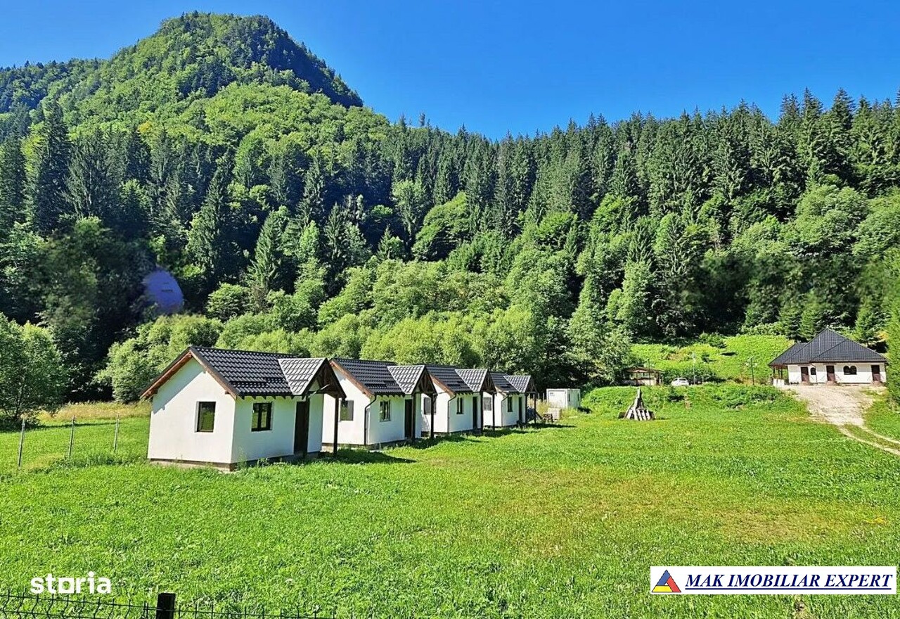 Vilă turistică de vânzare în Rucăr–Sătic, Argeș, teren 7.000 mp, pensiune + cabane, facilități camping, ideal investiție. 320.000 €.