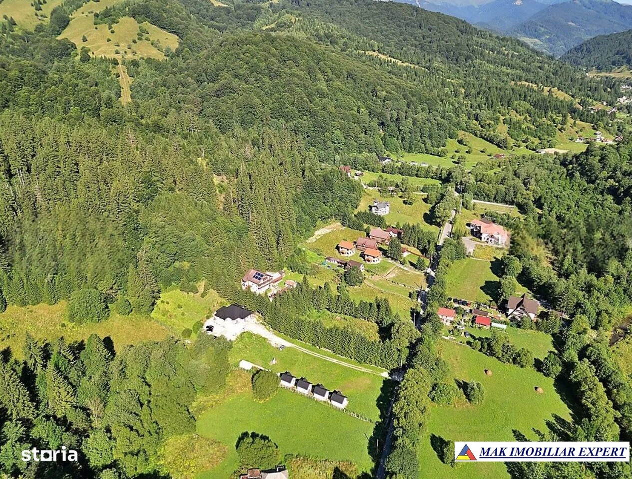 Terenul are o suprafață totală de 7.000 mp, cu deschidere de 38 m la drum asfaltat, oferind acces facil și multiple posibilități de dezvoltare turistică.