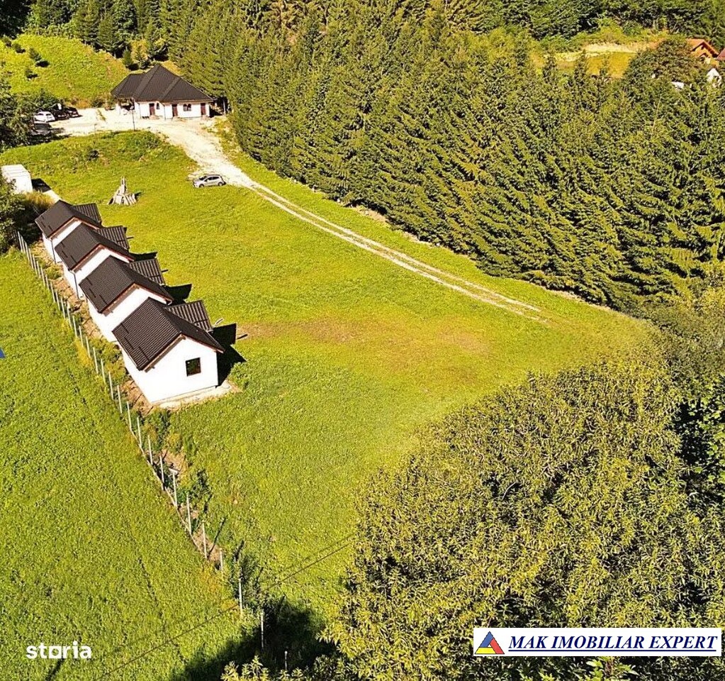 Pe proprietate se află și 4 cabane, fiecare cu o suprafață de 26 mp, dintre care una este complet finisată, celelalte fiind pregătite pentru finalizare, în funcție de viziunea investitorului.