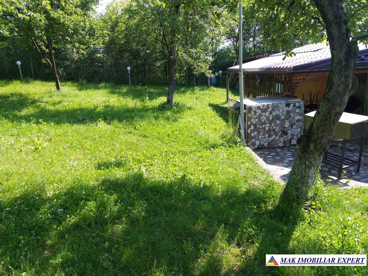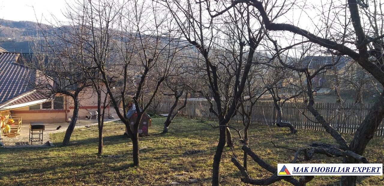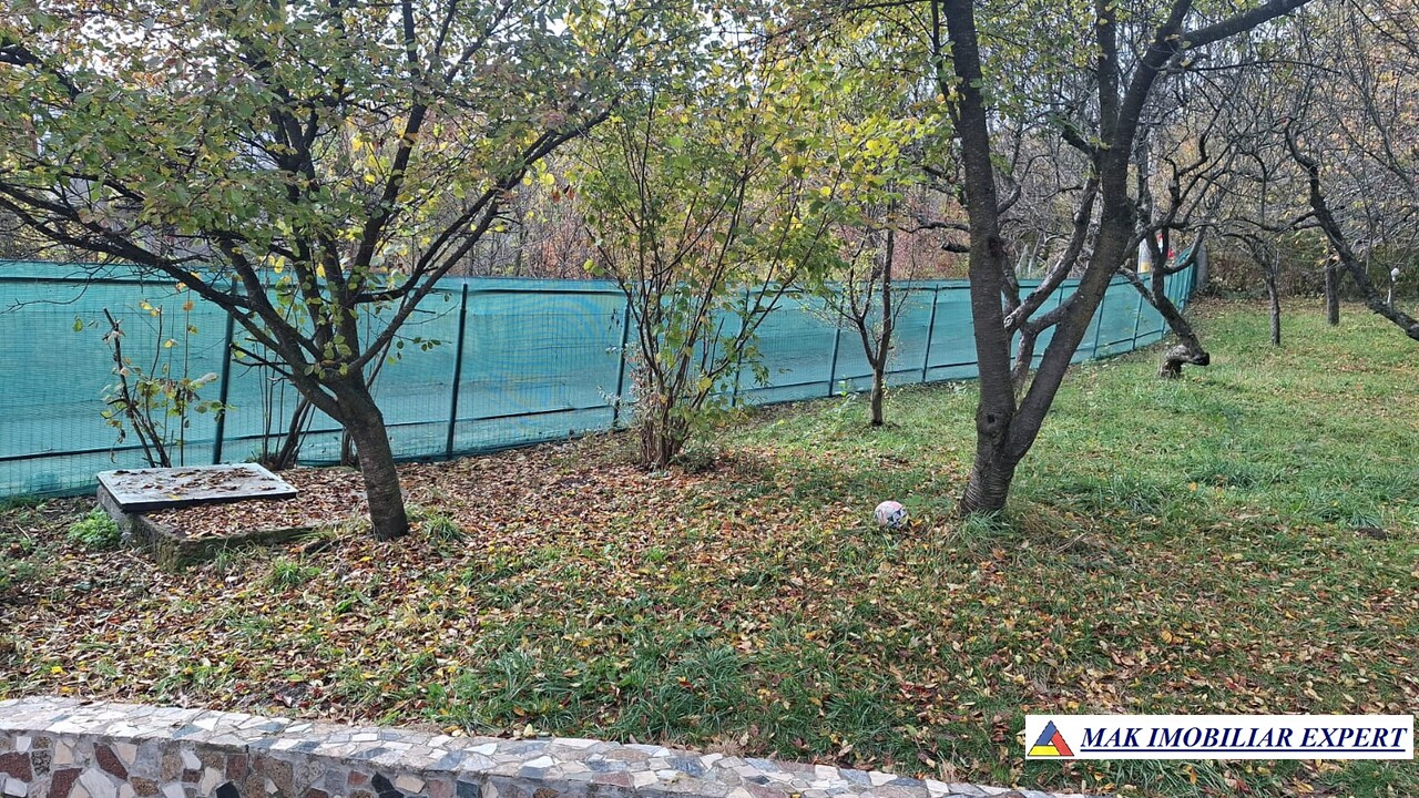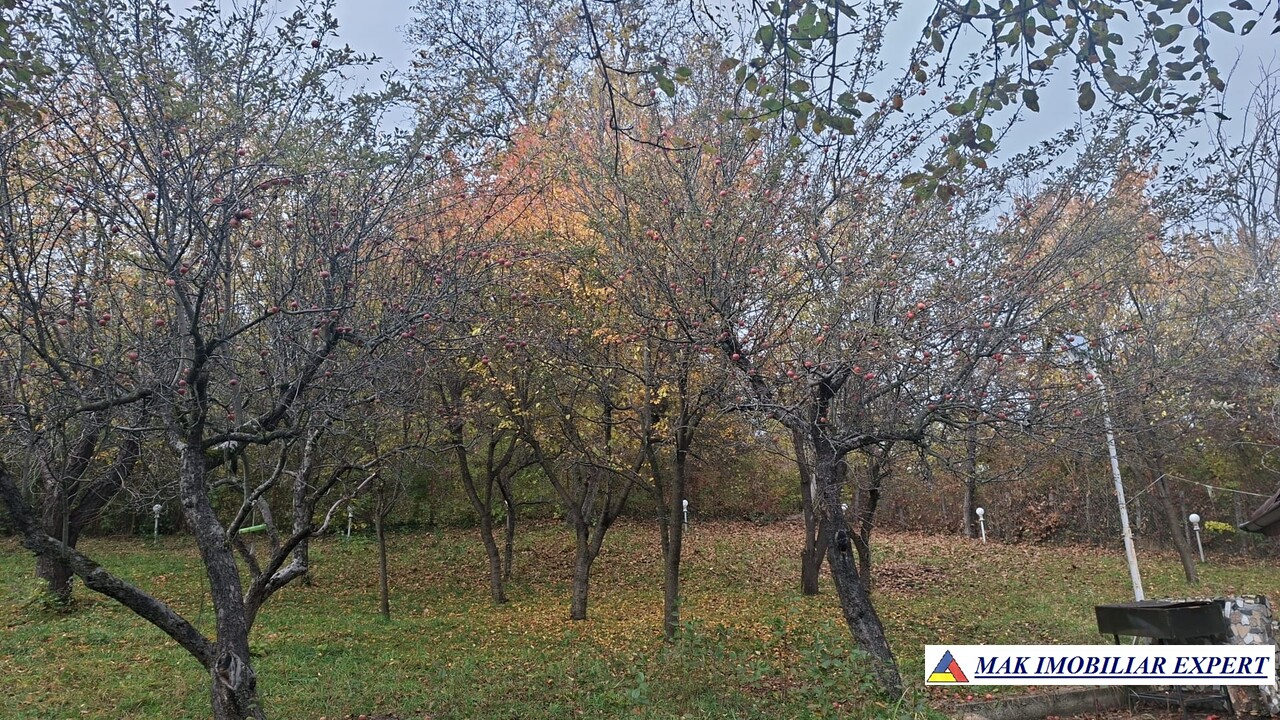 Terenul generos de 1.400 mp oferă spațiu pentru grădină, relaxare sau extindere și include o livadă cu aproximativ 40 de pomi fructiferi (meri, peri, pruni, caiși, cireși, aluni, vișini), 3 nuci și viță de vie.